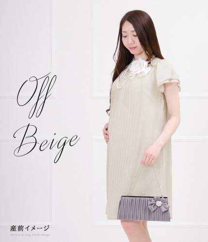 【サイズ】M/L 【カラー】オフベージュ/ブラック 【マタニティ分類 [ワンピース][フォーマルワンピース][マタニティ] ▼胸元のプリーツで着やせ効果。