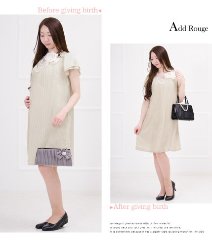 【割引クーポン対象】産前産後に使えるマタニティウェア♪授乳口付きシフォンプリーツワンピース(c580105)【Q3】[M/L]通勤・OL・七五三・お宮参りの服装の母親(ママ)用にも使えるワンピース。授乳服 妊婦服 産前 産後 妊娠中 春 夏 秋 冬